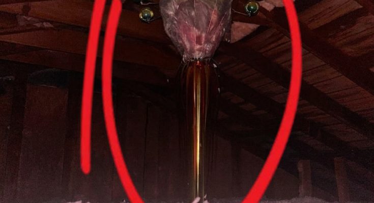 It wasn’t a cursed object, a fire hazard, or some forgotten experiment. It was the sad remains of an artificial Christmas tree, once bright and joyful, now crushed, bent, and half-swallowed by insulation. Years of dust, cobwebs, and stray decorations had transformed it into something unrecognizable, dangling like a warning from the rafters.