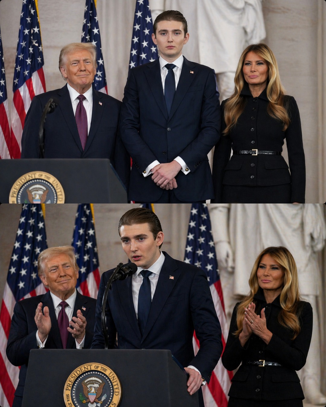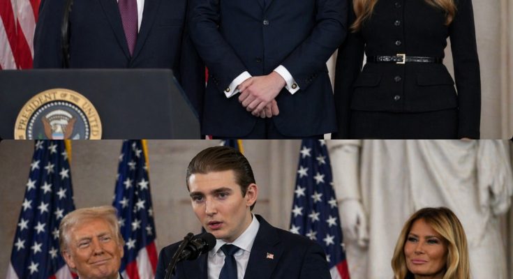 Between them, Barron Trump followed, noticeably taller than many remembered, carrying himself with a quiet confidence.