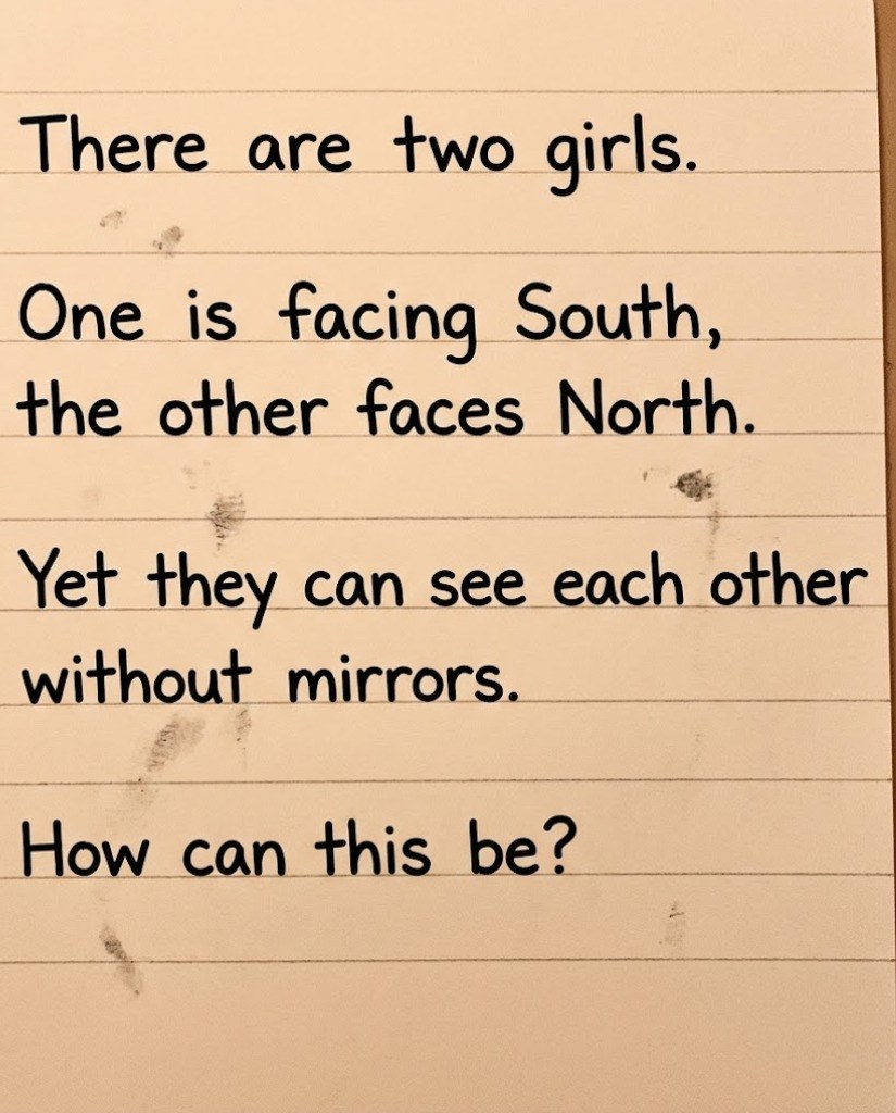 At first, it sounds impossible. If one girl is facing South and the other is facing North, wouldn’t they be looking in completely opposite directions?