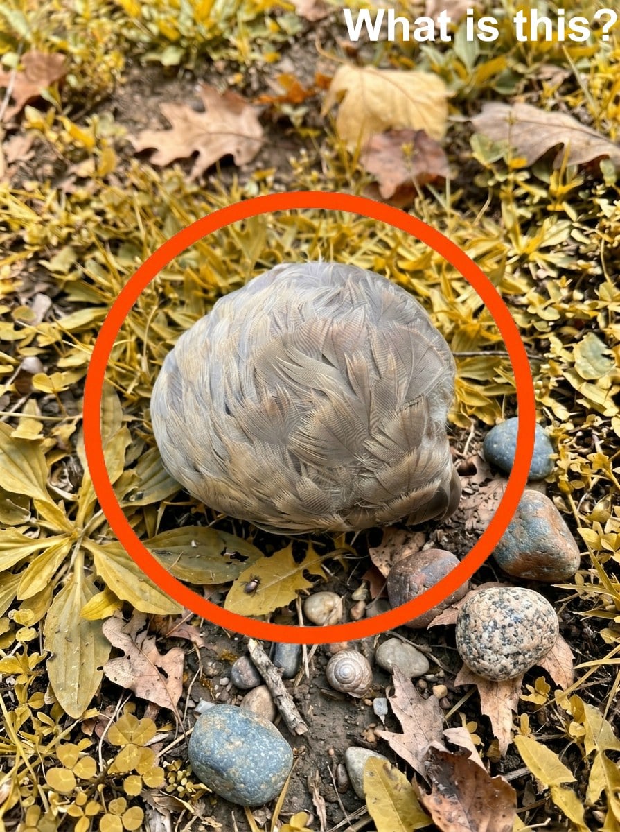 What lay at our feet wasn’t a miracle or a monster. It was the aftermath of a hunt. A predator—maybe a fox, a stray cat, or a silent hawk—had taken its meal and left only this fragile sphere of feathers behind. The body was gone, consumed completely. No bones, no flesh, just an eerie, weightless husk still pretending to be a bird.