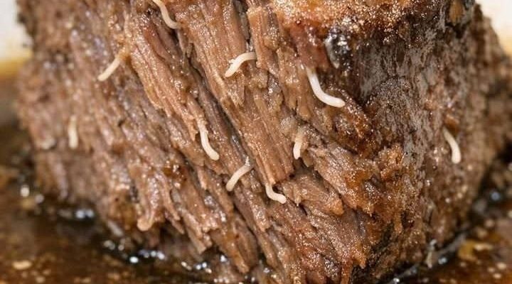 Those pale, stringy pieces that appear in slow-cooked beef are almost always just normal parts of the meat itself. Beef roasts are full of collagen-rich connective tissue that holds the muscle fibers together. When exposed to low, slow heat, that collagen breaks down, softens, and can show up as white, thread-like strands or gelatinous bits between the fibers. It may look unsettling, but in a properly cooked roast, it’s simply a sign that the tough tissue has melted into tenderness and flavor.