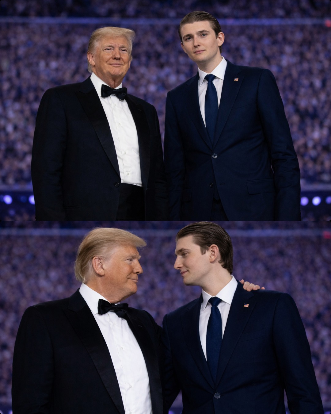 The two stood side by side, the contrast between them unmistakable — one a figure long associated with power and visibility, the other just beginning to define his place in public view.