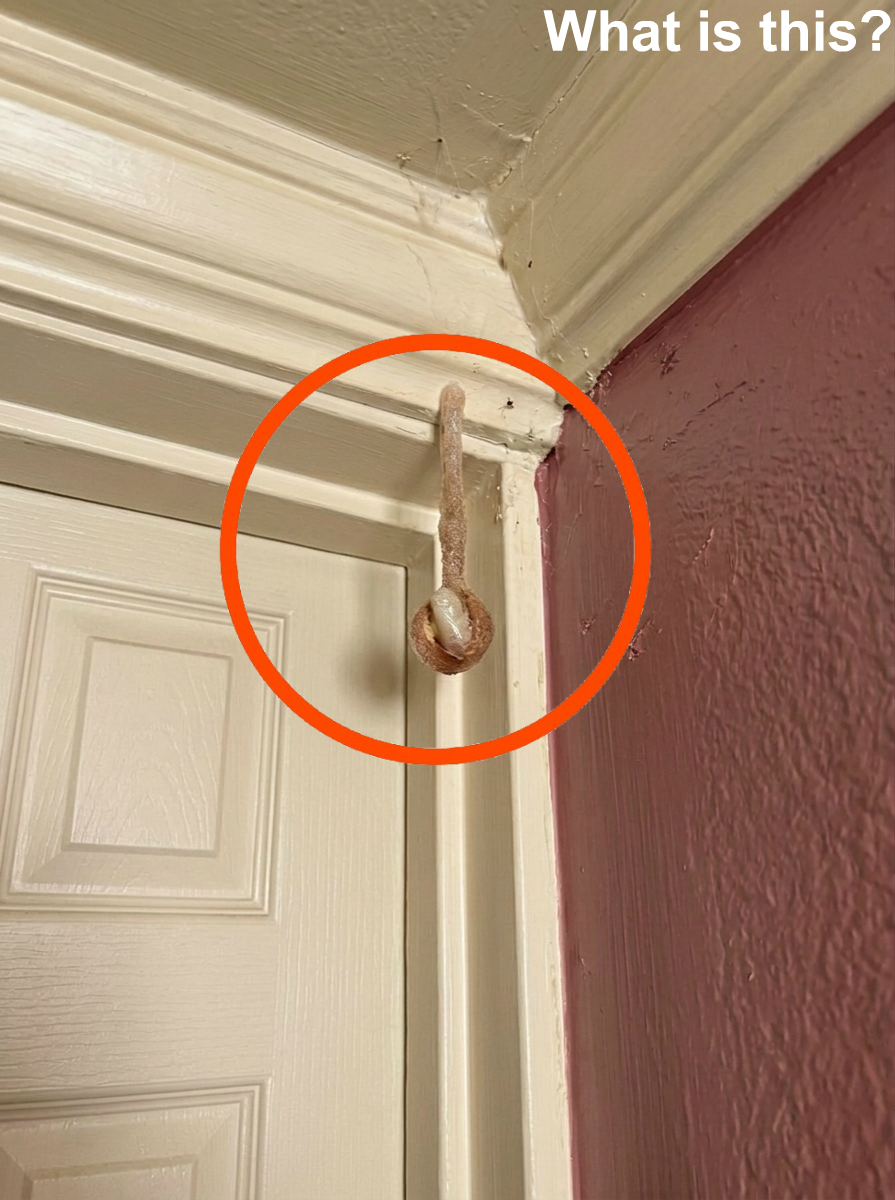 It turned out we had been sharing our “perfect” vacation room with a mud dauber wasp nest. That odd little column, carefully built from mud, was actually a tiny fortress—inside, a larva quietly developing, surrounded by paralyzed spiders the wasp had hunted and stored as food. Once we knew, the whole room felt different, as if a hidden world had been living right beside us the entire time.
