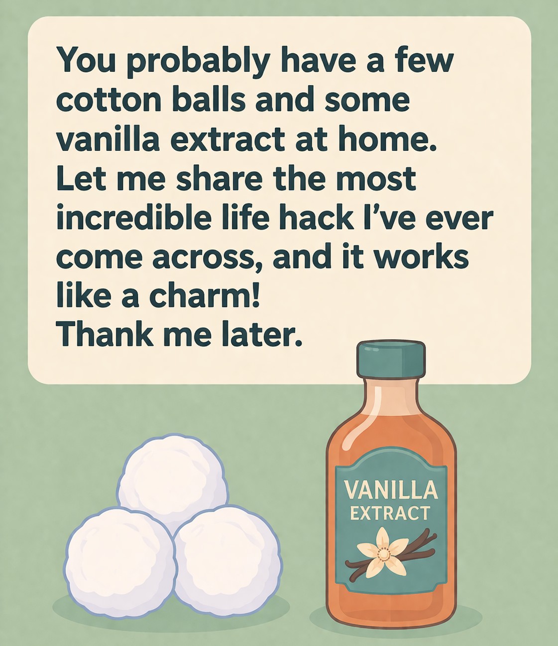 You don’t need a deep-clean or a Pinterest pantry to make your fridge stop smelling like old air. A few cotton balls, a splash of vanilla extract, and a jar lid are enough. Soak two or three cotton balls with just a few drops—enough to smell, not swim—set them on something flat, and tuck them onto any shelf where they won’t touch food. Within hours, that vague sour odor is softened into something warm and familiar, like you might bake cookies later… even if you absolutely won’t.